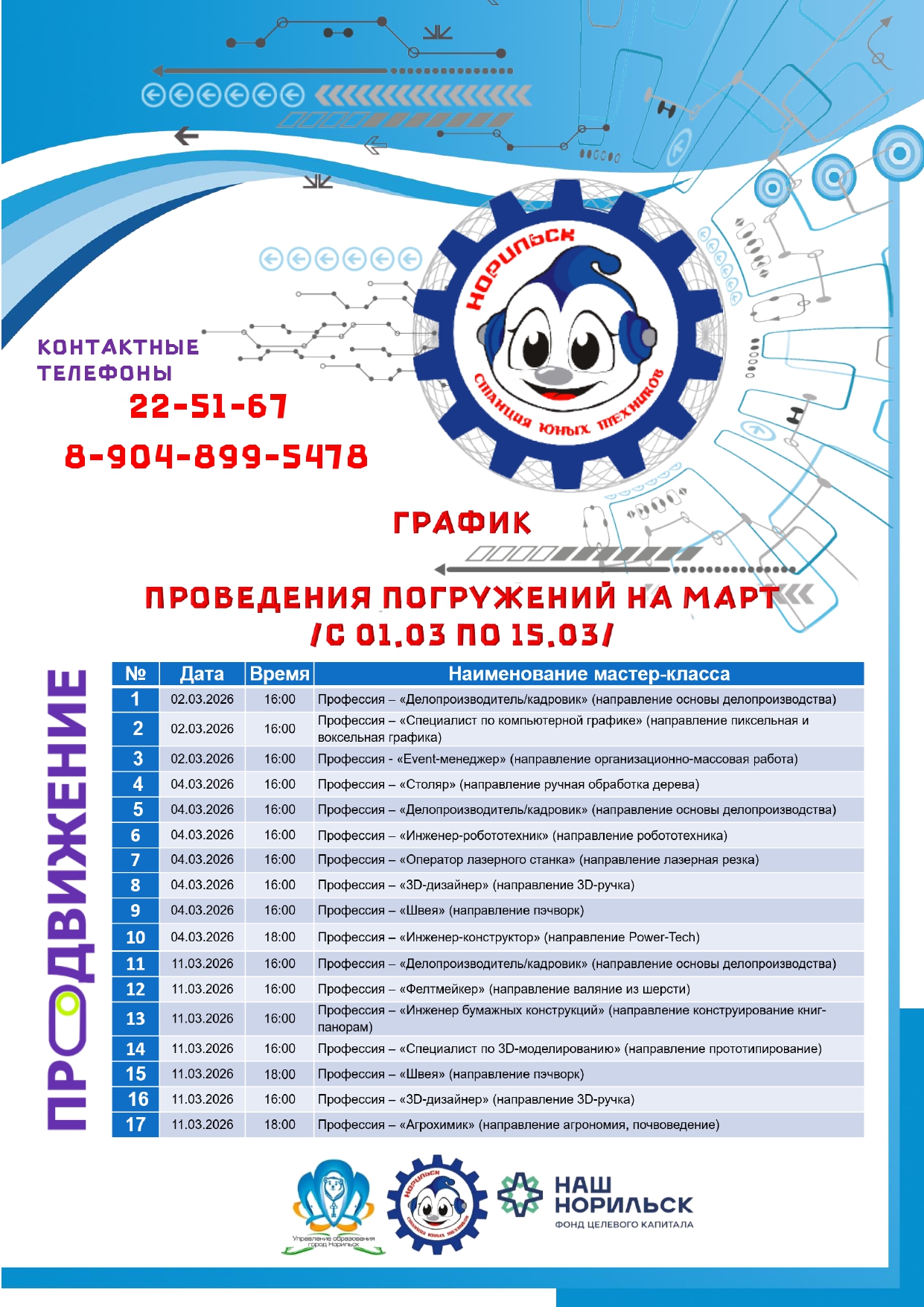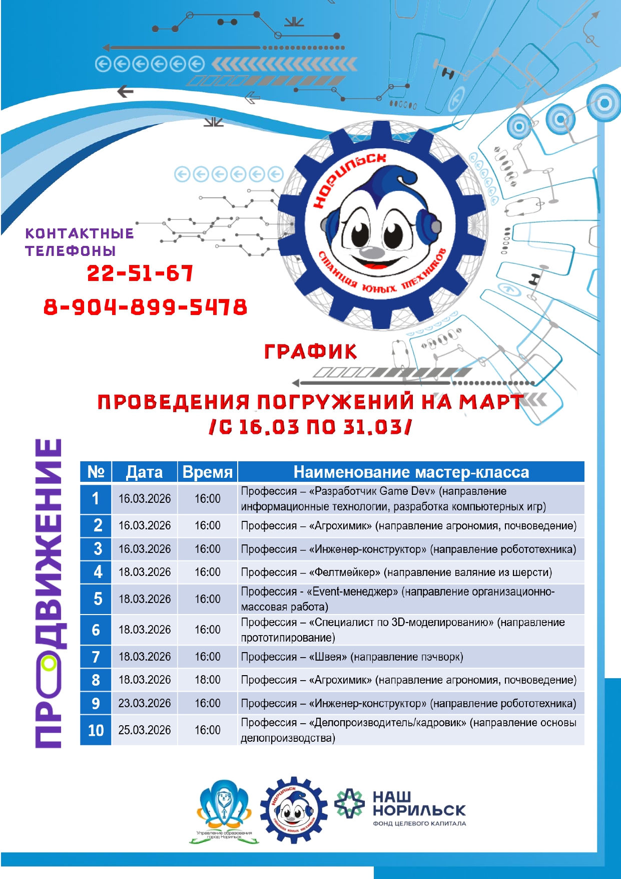 Так, 16 марта 2026 года в 16:00 приглашаем в МБУ ДО «СЮТ» погрузиться в профессии: