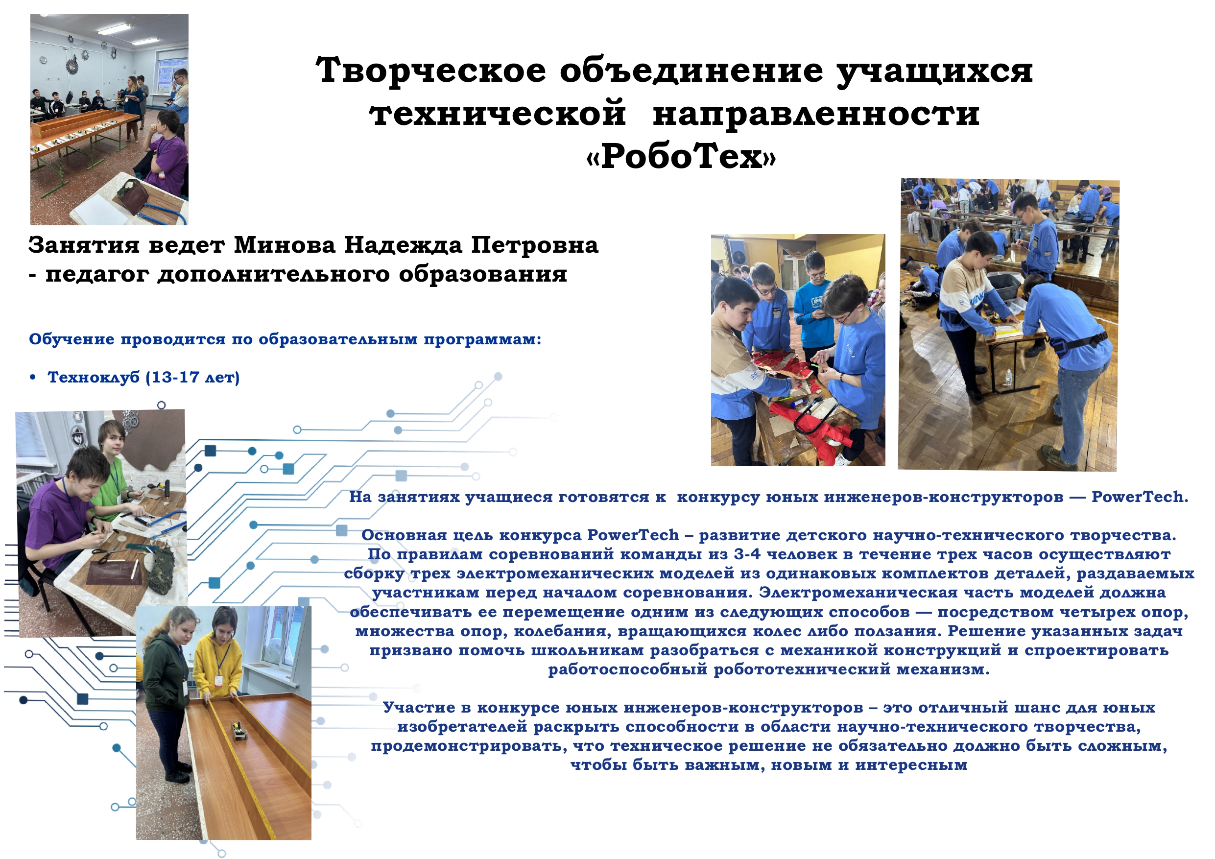 Станция юных техников — это уникальное пространство, где каждый ребёнок может раскрыть свои таланты, воплотить смелые идеи и стать настоящим мастером своего дела!